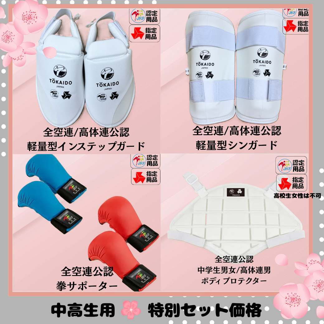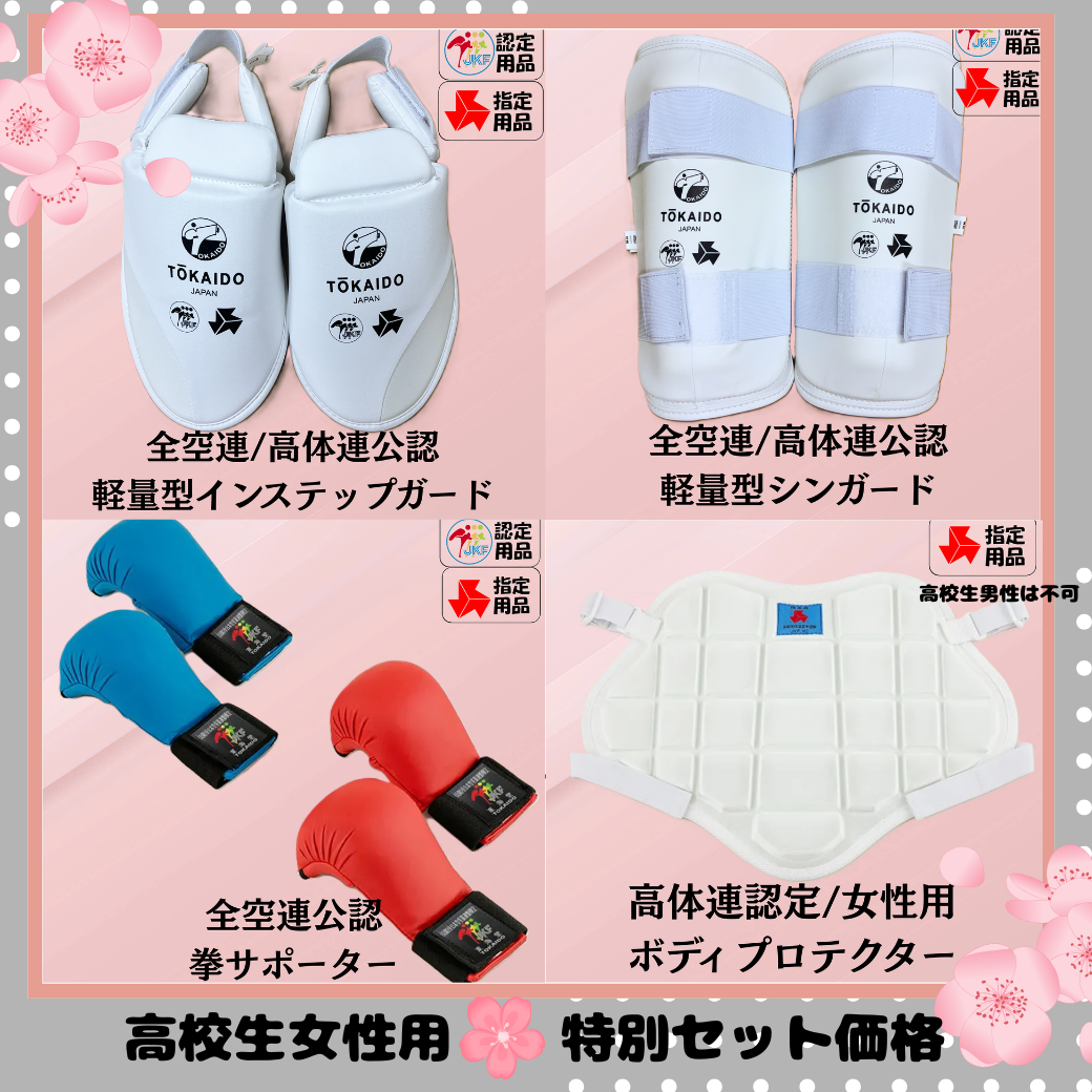 スタートアップキャンペーン防具セット(拳サポーター、インステップガード、シンガード、高体連女子ボディプロテクター)